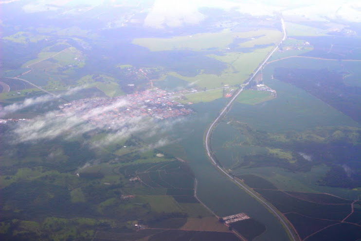 Laranjal Paulista SP. По его окраине протекает речка впадающая в Тиете на первом плане снимка - это Rio Sorocaba, так что большой город Сорокаба должен виднеться где-то там на горизонте, до него порядка сотни километров.